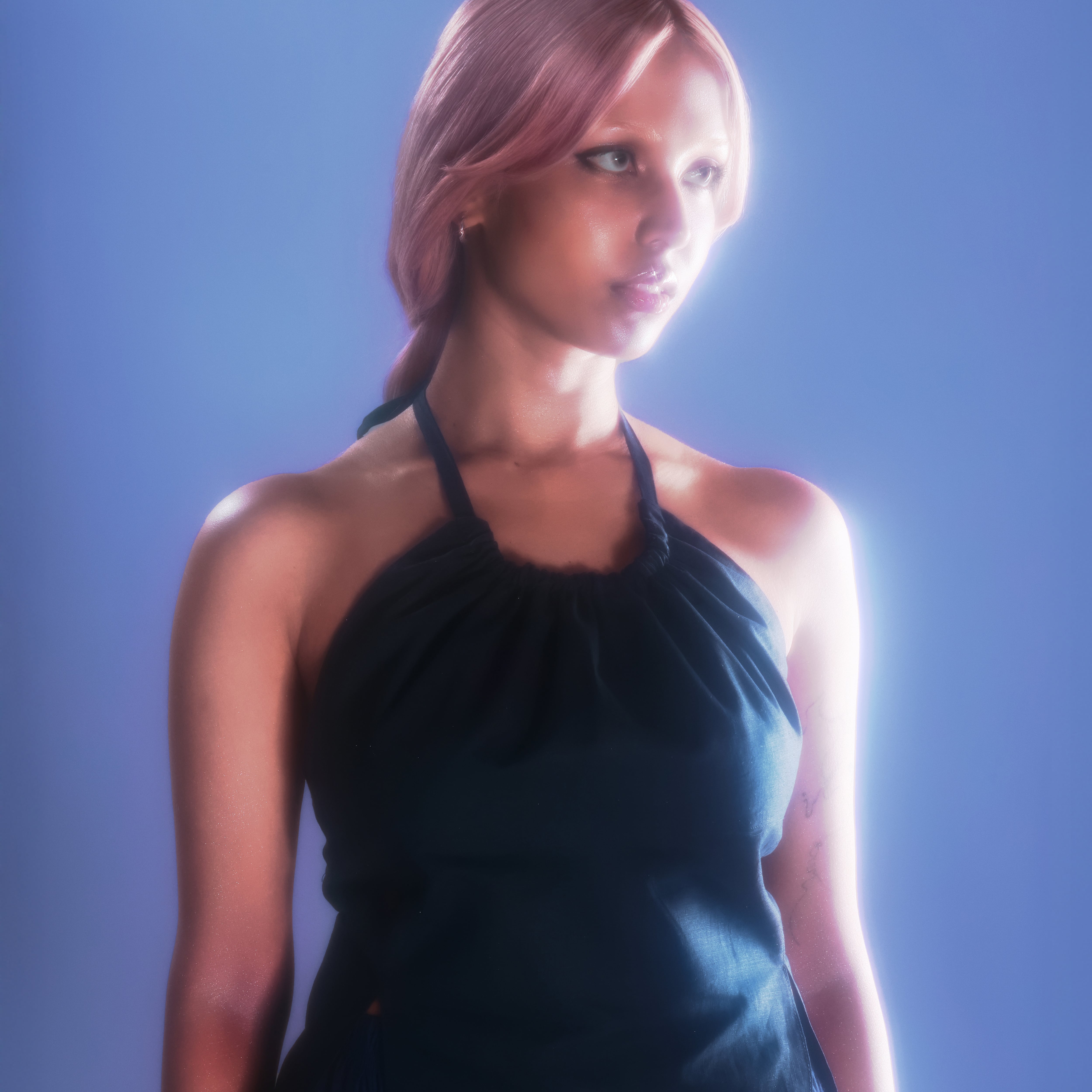 リネン素材で作ったホルターネックのトップス。クラブやフェスで汗をかいても快適に吸ってくれて、着るほどに肌に馴染んで気持ちいい肌触り。